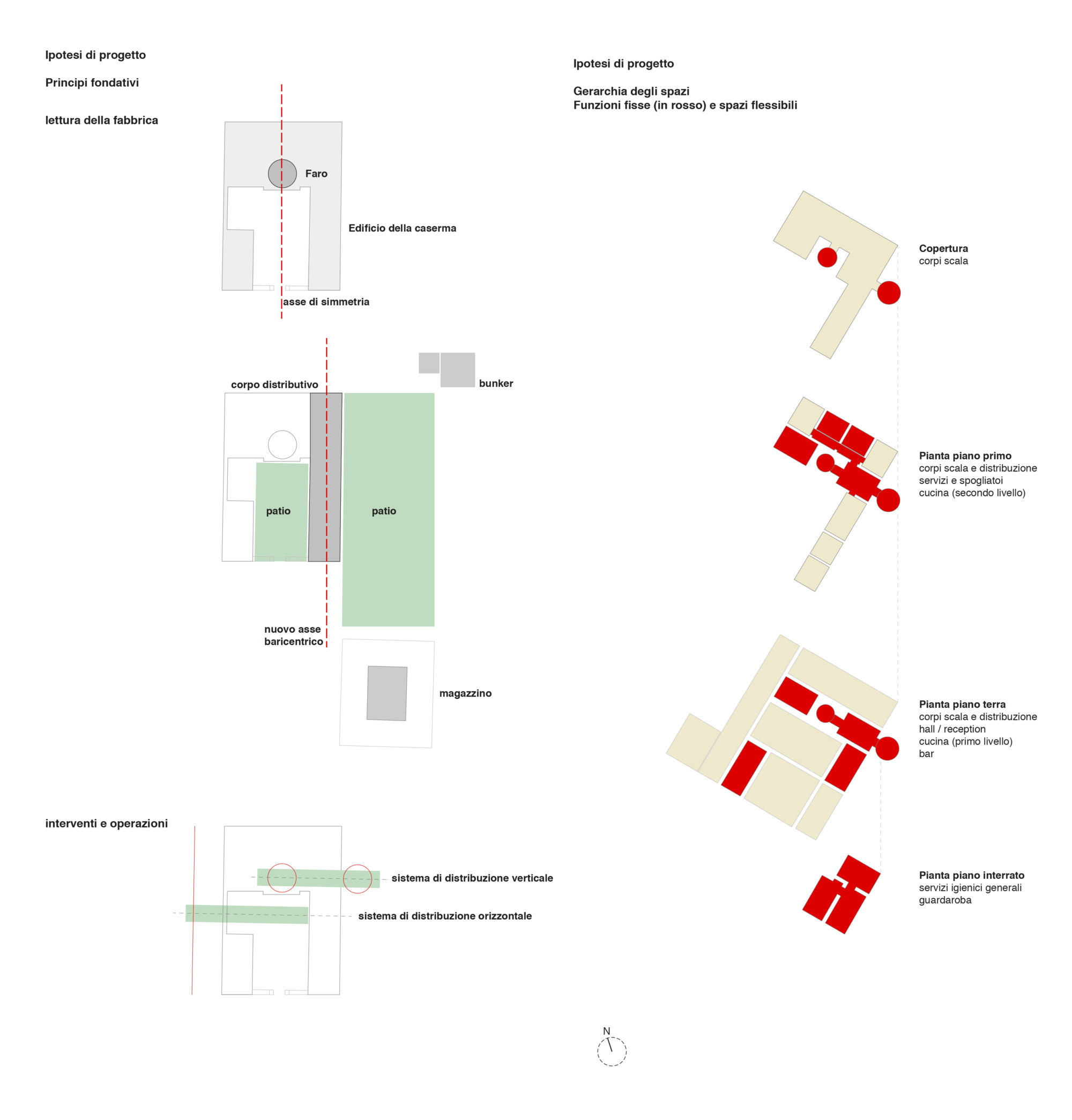 Ci è sembrato interessante pertanto approfondire il criterio con cui affrontare il progetto dell’uso degli spazi interni ed esterni introducendo la componente di “spazio flessibile” indirizzata verso tre-quattro direttrici di attività e fruizione da parte dei frequentatori del club, emerse dalla nostra analisi e che riteniamo possano coesistere, intersecarsi e non essere rigidamente distinte, in un’ottica di programmazione d’uso annuale e non solo stagionale della struttura.